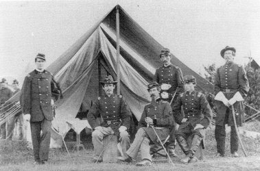 Officers of the 69th New York State Milita (Col Corcoran far left, Thomas Francis Meagher centre behind artillery piece)